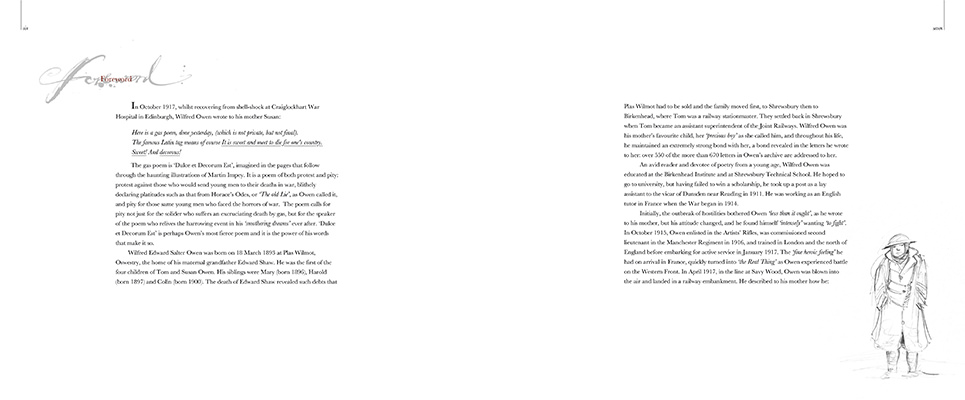 To mark the Armistice centenary of both Wilfred Owen's death and the Armistice, illustrator Martin Impey illustrates one of the greatest war poems ever written, Wilfred Owen's searing polemic, Dulce et Decorum Est.